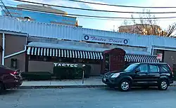 The current Tastee Diner in Laurel was originally known as the Laurel Diner, constructed in 1951 by the Comac Diner Company, and was delivered by truck from Vineland, New Jersey. It is the third diner on the site, replacing an early 1930s model built by the Paterson Vehicle Company, moved to Baltimore where it was known as the State Diner. The building has a 3-bay structure, with its stainless steel rectangle attached to a yellow brick kitchen and service wing. Originally owned by three members of the S & T Realty Company, the diner was sold to M & W Tastee Foods in 1982.[6] This property is said to be one of only four surviving Comac diners; the others are Jack's Diner in Albany, New York,[7] Bayway Diner in Linden, New Jersey,[8] and Daphne's Diner in Robbinsville, New Jersey.[9] Of these, only Jack's and the Tastee Diner remain fully intact without significant structural modification.