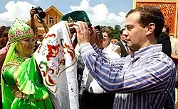 The official languages of the republic are Tatar and Russian.[19] The head of Tatarstan is Rustam Minnihanov. Religious leaders include the mufti Kamil Samigullin and the metropolitan bishop Cyril Nakonechny.[20][21]