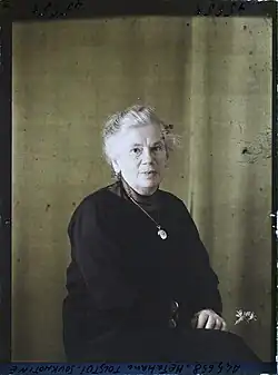 Countess Tatiana Lvovna Sukhotina-Tolstaya (Russian: Графиня Татья́на Льво́вна Сухо́тина-Толста́я, 4 October 1864 – 21 September 1950), was a Russian painter and memoirist. She was the second child and oldest daughter of writer Leo Tolstoy.