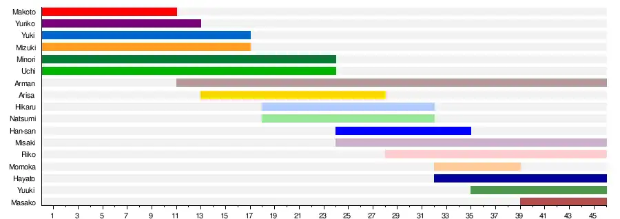 06 Yuriko Hayata 早田悠里子 Yuriko/Yuri medical student (1992-04-06)April 6, 1992 23 01–13 13