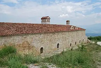 The Tetovo Fortress (Macedonian: Тетовско кале; Albanian: Kalaja e Tetovës) is a ruined fortress and archaeological site in Tetovo, North Macedonia. Because of its location on a hill called Baltepe, it is also known as Baltepe Fortress. The fortress was built beginning in 1820 under Abdurrahman Pasha, who also reconstructed the Šarena Mosque. On the site previously stood a monastery dedicated to Saint Athanasius. The fortress was built with a guest house, a dungeon, a kitchen, a dining hall, and a fountain. Water did not flow from the fountain, reportedly, until Abdurrahman Pasha was summoned to Constantinople in 1843 on suspicion of treason. After his departure from Tetovo, the fortress fell into ruin.[1] It is believed that three escape tunnels were built from the fortress: one to the city center, one to the upper part of Tetovo, and one to the village of Lavce.[2]
