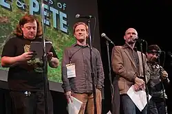 From left to right: Danny Tamberelli, Michael C. Maronna, Toby Huss, and Rick Gomez during the "Pete & Pete Forever" reunion at SF Sketchfest 2016, in San Francisco, United States