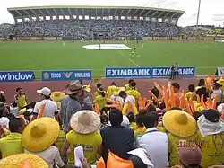• At Vinh Stadium, teams had to perform a number of soccer exercises. First, teams had to hit the ball between themselves using only their heads and keep it airborne for 4 hits, 2 each. Then, one team member would kick the ball around a series of cones and kick it to their partner, who had run through a slalom of sticks. Their partner had to kick it into an open goal. Teams had to kick three out of five goals in order for them to get their next clue. If they failed this, they would receive a 15-minute penalty.