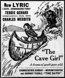 The Cave Girl is a 1921 American silent drama film directed by Joseph J. Franz and featuring Teddie Gerard, Charles Meredith, Lillian Tucker and Boris Karloff in an early film role.[1] The source for the William Parker screenplay was the stage play of the same name by George Middleton and Guy Bolton.[2] The film's tagline was "A Romance of Silent Trails and Rushing Waters... A Drama of Youth Gone Wild... Enacted in the Yosemite Valley in the Middle of Winter." (Print Ad in the Ludington Daily News, ((Ludington, Mich.)) 18 May 1923). The film is presumed lost.[3]