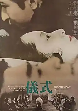 The Ceremony (Japanese: 儀式, Hepburn: Gishiki) is a 1971 Japanese drama film directed by Nagisa Ōshima, starring Kenzo Kawarasaki and Atsuko Kaku.[2] The film takes place in post-war Japan, following a family clan through their wedding and funeral ceremonies, and the lengths the elder generation goes to preserve their traditions in spite of the damage it causes to the younger.[3]
