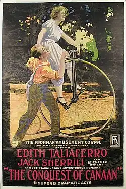 The Conquest of Canaan is a 1916 American silent drama film directed by George Irving and starring Edith Taliaferro, Jack Sherrill and Ralph Delmore.[1] It was based on the novel by Booth Tarkington which was subsequently remade as a 1921 film of the same title.