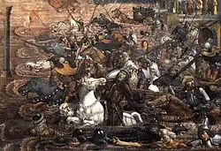 The Crossing of the Red Sea is a fresco executed in 1481–1482 and located in the Sistine Chapel, Vatican City. Of uncertain attribution, it has been assigned to Cosimo Rosselli. It depicts the crossing of the Red Sea by the Israelites, from chapter 14 of the book of Exodus.