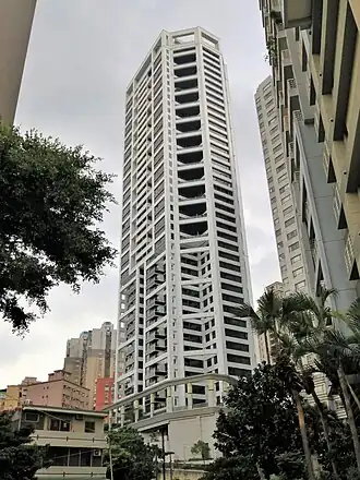The Crystal Plaza, also known as Water Cube (Chinese: 水立方; pinyin: Shuǐ lìfāng), is a residential skyscraper located in Tamsui, New Taipei, Taiwan. It is designed by C.Y. Lee & Partners and was completed in 2013. The height of the building is 160.6 m (527 ft), with a floor area of 60,278.65 m2 (648,834.0 sq ft), and it has 41 floors above ground, as well as six basement levels. It is the tallest building in Tamsui.[1][2][3]
