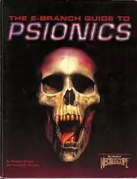The E-Branch Guide to Psionics is a supplement about the top-secret British government organization known as E-Branch, which performs intelligence operations using psychic powers.[1]