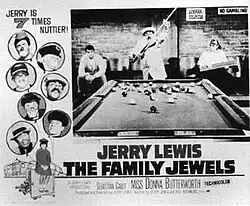 The Family Jewels is a 1965 American comedy film. It was filmed from January 18 to April 2, 1965, and was released by Paramount Pictures on July 1, 1965. The film was co-written, directed, and produced by Jerry Lewis who also played seven roles in the film. Lewis' co-star, Donna Butterworth, made only one other film, Paradise, Hawaiian Style, with Elvis Presley. Gary Lewis & The Playboys have a cameo in which they sing "Little Miss Go-Go"; their hit song "This Diamond Ring" is also featured.