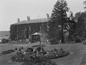 The original Gaer House was built in the reign of Queen Elizabeth by Alexander Seys, Esq., second son of Roger Seys, Esq., of Boverton. Roger Seys was Attorney-general of Wales in the time of Queen Elizabeth. Alexander Seys had several children by his wife Elizabeth: Roger, Alexander, William, Elizabeth, Mary, and Florence. The Gaer House passed to the third son, William.[3] The Gaer remained in the Seys family until the death of William Seys, High Sheriff for the county in 1738. He left four daughters, his coheirs. Florence, his third daughter, married Henry Montonnier Hawkins (d. May 1814), and the house passed to their son, Anthony Montonnier Hawkins in whose lifetime, the Gaer House was entirely renovated, the Elizabethan architecture destroyed, and a modern front substituted without any particular style of architecture. It stands upon a slight topographic prominence, which has views over the Bristol Channel to the coast of Somersetshire. In one area, the grounds extend to Tredegar House Country Park, on the highest portion of which are the remains of the Roman fort or encampment.[4]