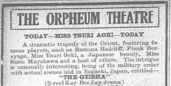 The Geisha is a 1914 American silent drama short film, directed by Raymond West and using music by Sidney Jones from the stage musical The Geisha. The film features Sessue Hayakawa and Tsuru Aoki,[2] It also stars Frank Borzage, Ramona Radcliffe and Henry Kotani in important roles.[3]