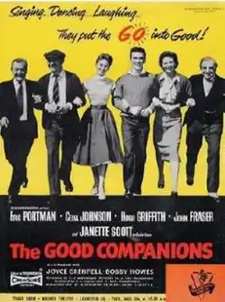 The Good Companions is a 1957 British musical film directed by J. Lee Thompson and starring Eric Portman and Celia Johnson.[2][3] It was written by J.L. Hodson, T.J. Morrison and J.B. Priestley based on the 1929 novel of the same name by Priestley and is a remake of the 1933 film version.