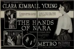 The Hands of Nara is a 1922 American silent drama film directed by Harry Garson and starring Clara Kimball Young, Elliott Dexter and Vernon Steele.[1] It is based on the novel of the same title by Richard Washburn Child.