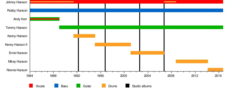 • Robbie Hanson (Rob Wright) – bass guitar (1984–2016)