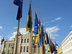 House with Chimaeras (Ukrainian: Будинок з химерами, romanized: Budynok z khymeramy) or Horodetsky House (named for Władysław Horodecki) is an Art Nouveau building located in the historic Lypky neighborhood of Kyiv, the capital of Ukraine. Situated across the street from the President of Ukraine's office at No. 10, Bankova Street, the building has been used as a presidential residence for official and diplomatic ceremonies since 2005.[1][2] The street in front of the building is closed off to all automobile traffic, and is now a patrolled pedestrian zone due to its proximity to the Presidential Administration building.