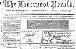 The Liverpool Times, printed in Parramatta, was the first local newspaper in Liverpool and soon was made obsolete by The Liverpool Mercury.[2] The Liverpool Herald began in 1897 as a result of the merger of both of these newspapers.[2]