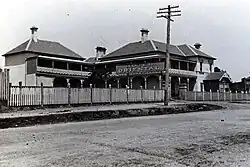 In 1890 Raymond sold a portion of the land grant that he owned at Springwood to James Lawson who developed the site as a large two storey hotel. It is this building that is listed on the local government heritage register of the City of Blue Mountains. The Oriental Hotel is in a prominent location at the corner of Macquarie Road and Raymond Road. The Victorian origins of the hotel are best seen from Raymond Road where the hipped slate roof, rendered chimneys and vertically proportioned double hung windows are most visible. Facing Macquarie Road the hotel has a two-storey verandah on its main north wing terminated by a hipped front. This composition relates to its Victorian origins, but the verandah has lost its original timber and cast iron structure and the windows have lost their highly decorative surrounds. A two-storey wing to the east, set back from Macquarie Street, was built around the same time as the main wing. The picket fence to Macquarie Street is a reconstruction of the early fence on the site.[1][3]