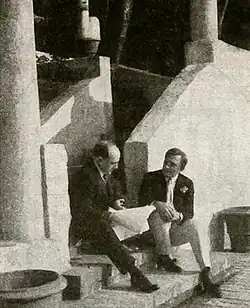 McCloskey (left) reading his scenario to Hitchcock at the comedian's estate, 1914