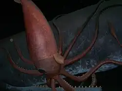 The giant squid and whale diorama at the American Museum of Natural History.