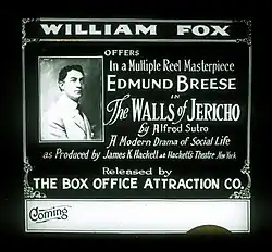 The Walls of Jericho is a lost[1] 1914 American silent drama film directed by Lloyd B. Carleton and James K. Hackett. The film stars Edmund Breese, Claire Whitney, Walter Hitchcock, Stuart Holmes, and Edward José. It is based on the 1906 play The Walls of Jericho by Alfred Sutro.[2] The film was released by Box Office Attractions Company on November 19, 1914.[3][4][5]