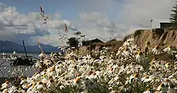 Left: Lago Fagnano. Right: flowers on the shores of the lake