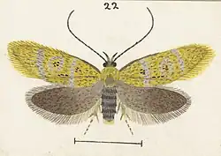 - ^ a b c Edward Meyrick (1884). "Descriptions of New Zealand Microlepidoptera. III. Oecophoridae". Transactions and Proceedings of the New Zealand Institute. 16: 42. ISSN 1176-6158. Wikidata Q63976486.