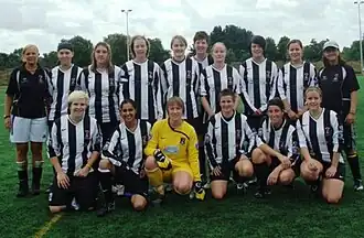 The club was founded in the 2007 close season, initially as Netherton Colts. The existing manager resigned from the club, leaving its members no choice but to go it alone.[1] After a lonely period, Angela Boden from Tipton Town men's football club stepped in and offered support and a club to affiliate to. As she runs the girls team, she was quite keen for an adult squad for them to progress to. Faye Harrison, who previously played for Wolves Women, stepped in as manager and Susan Albrighton as secretary, with no experience of running a football club, soon got to grips with it all and managed to get the team through its first season.