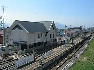 1. ^ a b c d Shinano Mainichi Shimbun (2011). Nagano Prefecture All Railway Stations, revised edition (長野県鉄道全駅 増補改訂版) (in Japanese). Shinano Mainichi Shinbun Publishing. p. 25. ISBN 9784784071647.