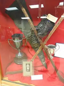 After the season, the team then played a series with the Victoria Aristocrats of the Pacific Coast Hockey League. A controversy erupted when a letter arrived from the Stanley Cup trustees on March 17, that the trustees would not let the Stanley Cup travel west, as they did not consider Victoria a proper challenger because they had not formally notified the trustees.[4] However, on March 18, Trustee William Foran stated that it was a misunderstanding. PCHA president Frank Patrick had not filed a challenge, because he had expected Emmett Quinn of the NHA to make all of the arrangements in his role as hockey commissioner, whereas the trustees thought they were being deliberately ignored. In any case, all arrangements had been ironed out and the Victoria challenge was accepted.[5][6] Nevertheless, the Torontos defeated Victoria in a best-of-five series played in Toronto in three straight games.