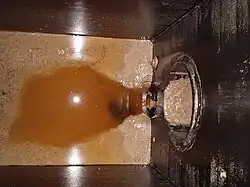 Qiūshí 秋石 (lit. "autumn mineral"), translated as "urea"[5] and "processed white sediment of human urine with salt" (Luo), was prepared from 52.11 nibaiyin "white urinary sediment" from the urine of either Yin girls or Yang boys. The qiushi drug was called qiūbīng 秋冰 (lit. "autumn ice") after recrystallization, similar to boiling seawater to get salt. Li Shenzhen warns that, "Some alchemists fake the product by calcining salt in a furnace. Any substance alleged to be Qiubing should be examined carefully to make sure it is genuine."[11] Li Shizhen outlines historical changes in the use of steroid-rich urine drugs.[12] In ancient times, doctors used urinary precipitates to "keep the blood in motion, greatly help sexual debility, bring down heat, kill parasites, and disperse poisons; but the princes and wealthy patricians disliked using it because they considered it unhygienic. So the iatro-chemists ([fangshi]) began to purify the sediment, making first [qiushi] and later on [qiubing]", which licentious people used as aphrodisiacs. The Bencao gangmu lists six methods of processing qiushi through techniques including dilution, precipitation, filtration, evaporation, calcination, and sublimation.