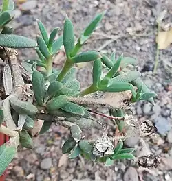 A small shrub, with several trailing stems (20 cm). The branches are gracile and spindly, with long, slender internodes (10–15 mm).