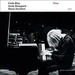 Trios is an album by American composer and pianist Carla Bley with saxophonist Andy Sheppard and bass guitarist Steve Swallow, recorded in April 2013 and released on ECM later that year.[1] This was the first occasion on which these longtime collaborators had worked as a trio since 1994's Songs with Legs.