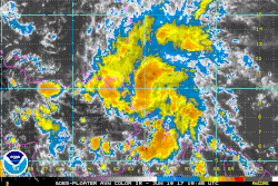 Infrared satellite loop of Bret making landfall in the island of Trinidad, early on June 20
