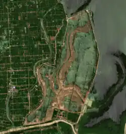 Tuanzhou is a township of Huarong County, Yueyang City.[1] It is located on the south bank of Dongting Lake. The village is built on land that was reclaimed in 1977.[2] Before then, the area was covered by reed fields.[3] Due to the location on the confluence of two rivers flowing into Dongting Lake, it has a high risk of flooding, suffering from major floods in 1996 and 2024.[2]