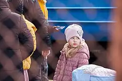 The city of Lviv in the west of Ukraine became a key staging ground for refugees.[47] Up to 100,000 refugees were arriving in the city every day,[48] which prior to the invasion had a population of 700,000.[49] From Lviv, trains transport refugees to border crossing points such as Medyka, Poland and Uzhhorod, close to the border with Slovakia and Hungary.[50] From Medyka, most refugees continue to Przemyśl, Poland, and onward to the rest of Europe.[51]
