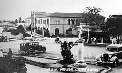 The custom house was designed by architect and Office of the Supervising Architect of the Treasury inspector Albert B. Nichols, who also designed the custom houses of Fajardo and Ponce. It was built between 1924 and 1931 at the site of a smaller 18th-century custom house, at a critical location that used to function as the central business district of San Juan during the late 18th and early 19th centuries, and the site of the main port of Puerto Rico (today the main cruise ship port section of Old San Juan) before the construction of the new port (Puerto Nuevo) located along the southern edge of the Bay of San Juan.[3] The Colonial Revival design was chosen to preserve the Spanish Colonial character of the area, as it incorporates architectural elements of the former Spanish custom house but also many of the Renaissance and Neo-Gothic elements popular in Spanish architecture of the time.[4] The former Spanish custom house, which also housed a smaller warehouse and post office, was demolished at an unknown date during the first decade of the 20th century. This was done as a territory-wide project to enlarge and upgrade the governmental properties in Puerto Rico during the early 20th century. Construction was made by the Philadelphia-based Richmond and Kemp Ornamental Iron and Bronze and by the North American Wood Products Company of New York City. It was primarily used as a custom and additionally as a warehouse by the American Customs Service in Puerto Rico until the end of World War I. Additional modifications were made in 1957 and 1959 by the U.S. Army Corps of Engineers while air conditioning was installed by 1960.[2] The building is still owned and managed by the U.S. Customs Service.[5]