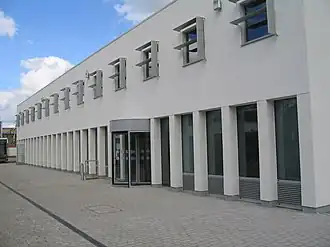 The Library was designed by van Heyningen and Haward Architects as a gateway to the campus. The building was completed in 2001 and provides approximately 360 individual study spaces, teaching space, staff work areas and traditional library services.[14] There is also the Gateway building which offers teaching and informal learning spaces, lecture theatres and a student service centre over three storeys.