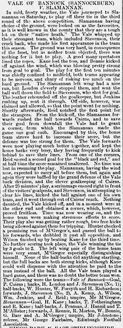 2. ^ "Vale of Bannock (Bannockburn) v Slamannan". Bridge of Allan Gazette: 3. 17 December 1887.