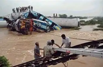 The Valigonda rail disaster occurred on 29 October 2005 between the Valigonda and Ramannapet stations, about 80 kilometres (50 mi) from Hyderabad in the Indian state of Andhra Pradesh (now located in Telangana).[2] A flash flood swept away a small rail bridge, and a train travelling on it derailed at the broken section of the line, killing at least 116 people and injuring many others. Many people were suspected of being washed away in flooded waters.[1] Initially sources had reported that about 150 persons could have been killed during the incident.[2]