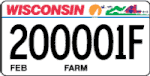 Dual purpose farm 1988-1994 Embossed dark blue serial on tan plate; "DUAL PURPOSE FARM" and "WISCONSIN" centered at top and bottom respectively; embossed "JAN" and debossed "88" at bottom left and bottom right respectively (some early plates had a border line) AZ 1234 Coded by weight class. Letter progression goes in reverse alphabetical order (AZ 1001-AZ 9999, then AY 1001 and so on) Issued to trucks used for farm and non-farm purposes. All bases from 1988 onward were revalidated through 2009.