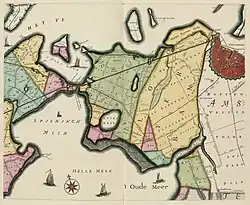 Vijfhuizen already existed before the reclamation of the Haarlemmermeer lake. In the Middle Ages, the village was situated along the main route from Haarlem to Amsterdam. Vijfhuizen stretched from Haarlem to halfway through Nieuwerkerk, where the villagers went to church. To the north of Vijfhuizen was the Spieringmeer lake and to the south - the Haarlemmermeer lake. The land bridge between the lakes was swept away in 1508 by further flooding and bank erosion and what remained was a headland with a polder behind it.