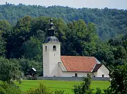 The local church is dedicated to the Holy Cross and belongs to the Parish of Žužemberk. It is a medieval building first mentioned in written documents dating to 1526. It was completely restyled in the Baroque in the 17th century.[4]