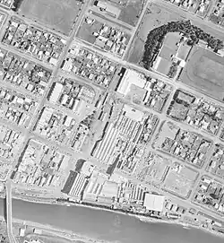 In 1885 the New Zealand Frozen Meat Company established a meet freezing works and cannery on land adjacent to the port and railway line. The site was chosen as steamers could load directly from the site without needing further transport, but there were also good rail links to the deep water port at Moturoa and the rest of the province.[14][15] The works has a rocky start – in 1887 they were closed due to financial issues with the parent company and equipment removed.[16] In 1890 they were purchased privately and reopened, and after another sale in 1898[17] were eventually purchased by Thomas Borthwick and Sons Ltd on 13 April 1903.[18]
