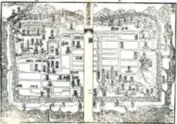 Linhai, located at the geographical centre of Taizhou, has historically served as the centre of culture and education in the region.[2] The administrative division of Linhai was first defined in 257, when Eastern Wu divided the Kuaiji Commandery, thus establishing the Linhai Commandery. By 591, the administrative seat of Linhai was shifted to the area near Dalu Mountain, which remained unchanged ever since.[2] In 622, the prefecture was renamed as Taizhou, a decision inspired by the presence of the Tiantai Mountains within its vicinity, with Linhai as the county name under the prefecture. This marked the genesis of the name "Taizhou".[3]