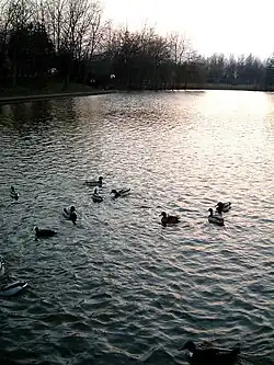 The village is built on green belt land. At the planning stage the designers were required to pay heed to the ecology of the local area to help protect the environment. Central to the plans therefore was an extensive lake that would become a haven for wildlife and many wild birds.