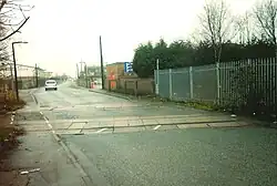 Looking across the former level crossing towards the site of the future metro extension from Wednesbury Great Western Street tram stop and freight traffic from Walsall and Round Oak