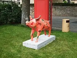Wellow Station, on the Somerset and Dorset Joint Railway, opened in 1874 and closed in 1966. The station building was converted into a house by the artist Peter Blake and his then wife Jann Haworth, in the mid-1970s. The railway followed the route of the Radstock arm of the Somerset Coal Canal. Although the Camerton branch of the canal was very successful, the Radstock branch was not, mainly because its connection to the main line at Midford involved transhipment via a tramway, and it carried very little traffic. The canal was mainly obliterated by the railway although a sharp bend (still in water) at St Julian's Well, and a tunnel, were bypassed by the viaduct over the foot of Bull's Hill. The railway trackbed East of the village is now part of national cycle route NCR 24, the Colliers Way. From April 2013 the route has a level connection beyond Midford to Bath via the Two Tunnels Greenway. This project was partially funded by auctioning King Bladud's pigs, 104 sculptures decorated by different artists, which were exhibited throughout the Bath area in 2008. Wellow hosted several pigs, including the most expensive of all which was decorated by Peter Blake and housed in the village pub, the Fox and Badger. The cycle route continues westward via Wellow High Street and minor roads to Stoney Littleton and Shoscombe before rejoining the former railways to Radstock and Frome.