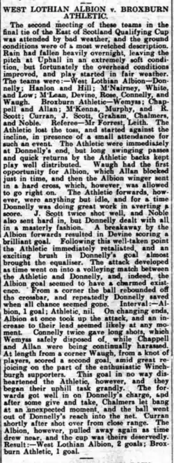 1907–08 East of Scotland Qualifying Cup Final, West Lothian Albion 2–1 Broxburn Athletic, Linlithgow Gazette, 15 November 1907