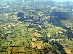 In 1864 the Board decided to seek powers to extend the railway beyond Gupworthy to workings in Joyce's Cleeve in the Quarme Valley.[37] Preliminary notices to this effect were published, but no application was made. Had the line been built it would have entailed another incline, which ore would have had to ascend before travelling eastwards to Brendon Hill where it would travel down again.[38]